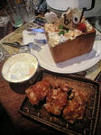 食べ物:こんがり肉・極上ザザミソサラダ・珍獣チーズのクアトロピザ・ガルルガナゲット。